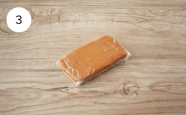 3. 2の生地をラップで包み、10×5cmくらいの大きさに伸ばす。