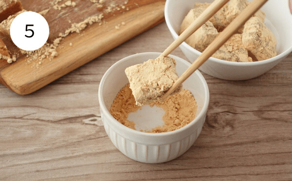 5. トッピング用きな粉を、生地全体にまんべんなくまぶしたら完成です。