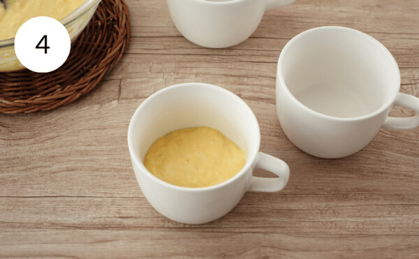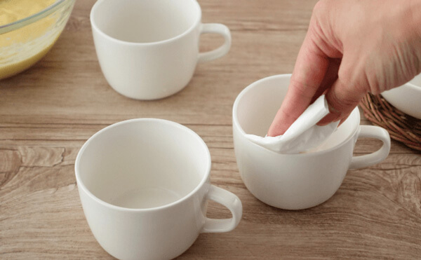 マグカップの内側に薄くサラダ油を塗っておくと生地離れがよくなります。