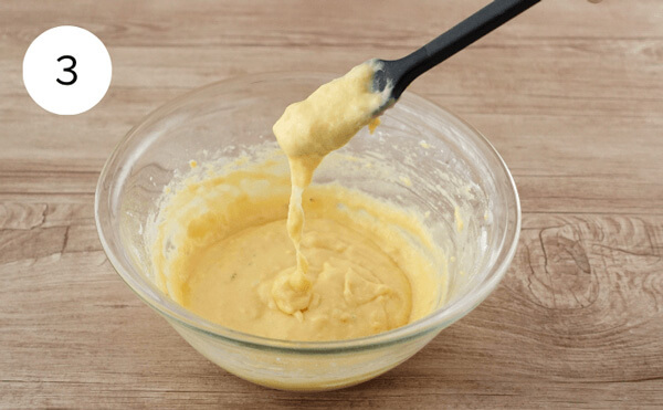 3. ホットケーキミックスの粉気がなくなるまで混ぜる。