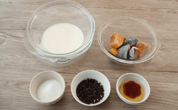 最初にご紹介するレシピは、市販の冷凍かぼちゃを使ったアイス。