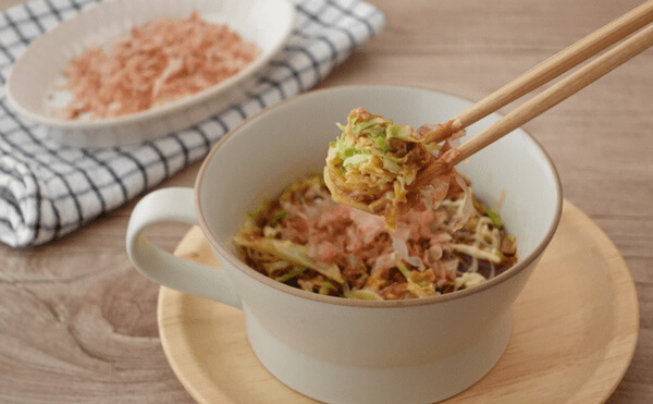 材料をマグカップに入れて電子レンジで加熱するだけなので、忙しい時でもサッと作れておなかを満たせる一品です。