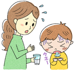 何度も繰り返し吐く、ぐったりしている、けいれんを起こしている、呼吸がおかしいといったときは、夜でも救急で受診を。
