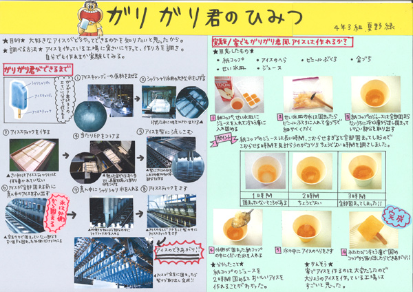 【第1回】では、自由研究に生かすために欠かせない、工場見学の事前準備について、【第2回】では、赤城乳業「ガリガリ君」の工場見学をレポートしました。今回は、実際に「ガリガリ君」の工場見学を参考に、工場見学を利用した自由研究のまとめ方のコツをご紹介します。
