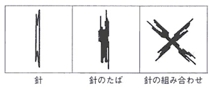 細長い針が束になったり、組み合わされたりした形です。
