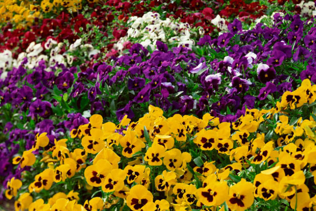「三色スミレ」という別名のあるパンジーもスミレ科スミレ属です。パンジーは寒さに強いため、春先に花壇で真っ先に目にすることが多いかと思います。それに色も豊富で、オレンジ、黄色、赤、紫などいろいろあります。花びらも大きめです。組み合わせ次第で花壇の雰囲気を自由自在に変えることができますし、花が咲いている期間も長く、手入れも簡単です。