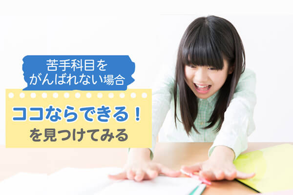 苦手科目は、勉強への意欲も上がりづらいもの。まずは、苦手科目の中でも、「ココならできる」点を見つけてみましょう。苦手科目とはいえ、じつは「ココなら解ける」「他よりも解きやすい」単元なら、勉強が進みやすくなりますよ。