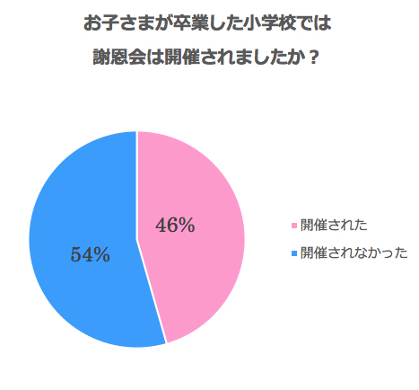 最初に、お子さまが卒業した小学校では「謝恩会」が開かれたかどうか、開催されたというかたには、「謝恩会」に参加したかどうかを聞きました。