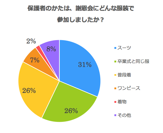 また、保護者のかたに謝恩会にどのような服装で参加したのかもお聞きしました。