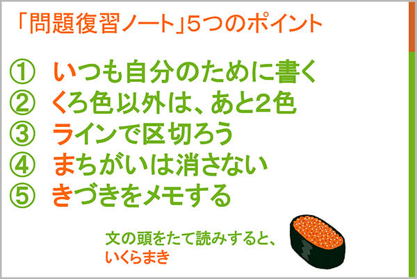 では、「問題復習ノート」を作るためのポイントは5つあります。