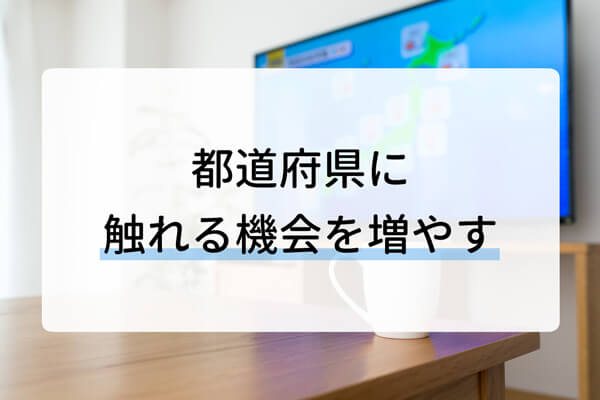- 都道府県の学習ポスターをトイレなどに貼り、触れる機会を増やす
