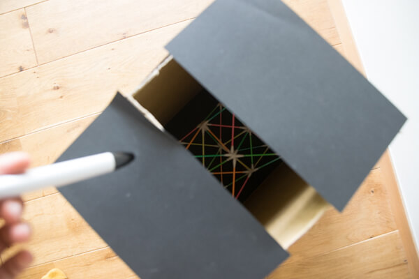 夏休みの宿題等で明るい場所に展示する場合は、段ボールの「ミニ暗室」も一緒に作ってみてください。
