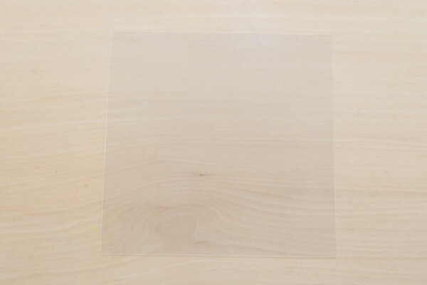 1.クリアファイルを15cm四方に切り抜く。
