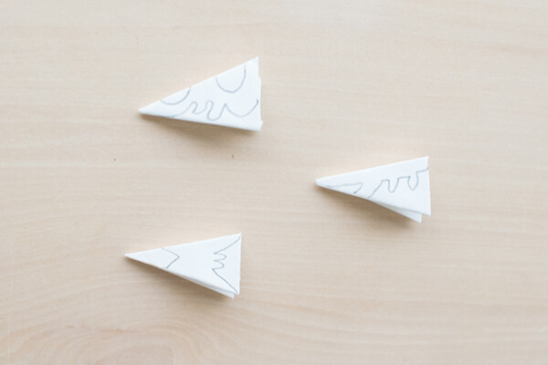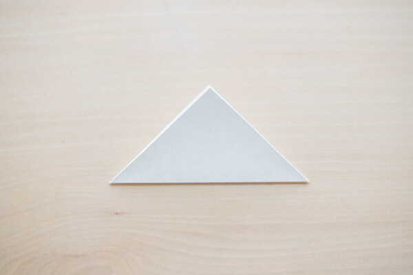 1. まず、雪の結晶の作り方をご紹介します。折り紙を三角に折ります。