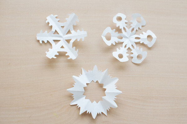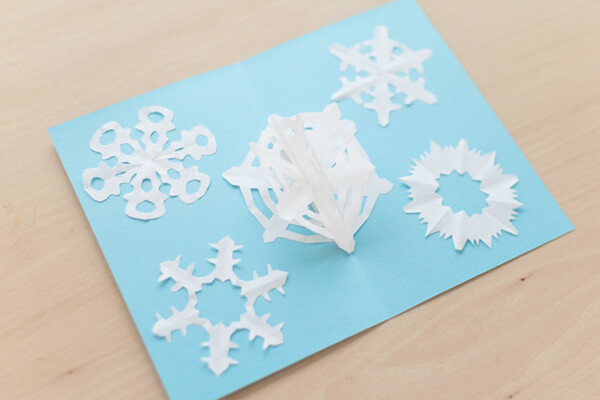 少し切り方を変えるだけで、いろんな形の雪の結晶ができあがるので、きっとお子さんは、何枚もチャレンジしてみたくなることでしょう。