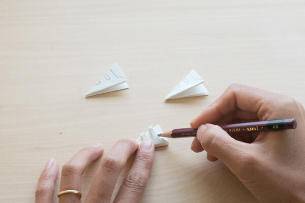 5. 切り取りたい線を鉛筆で描きます。このように切り取ったら、どんな形になるでしょうか?