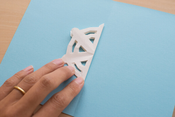 20.台紙を折り線でパタンと閉じて、上からよくこすります。台紙を開くと……。