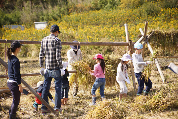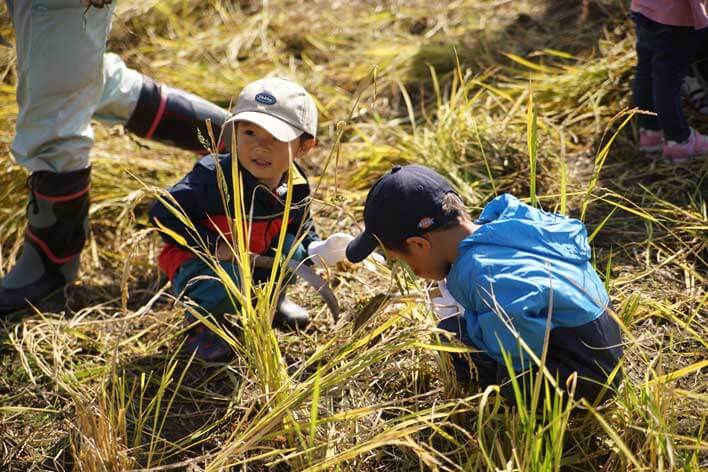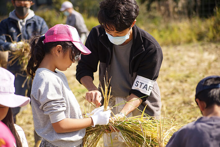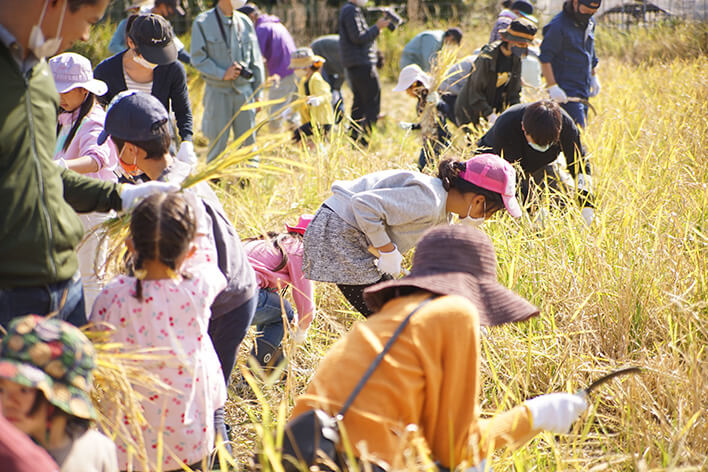 参加した方々からは、「毎日食べているご飯がどういう過程で作られるのかを実際に稲を見たり触ったりしながら子どもたちに知ってもらうことができて良かった」、「食物のありがたみを改めて感じることができた」などの声もありました。稲を刈るザクザクとした感覚、足の裏で感じる田んぼの土の柔らかさなど、収穫を通じて得られる体験も新鮮です。中には毎年参加している子どもたちが今までできなかった作業ができるようになるなど、「コメの体験」は地域の子どもたちの成長を感じられる機会にもなっています。