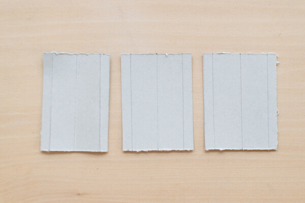 11. 次に、「デコボコ道」を作ります。段ボールBの、写真のように、表面に線(接着の跡です)が見える方を表にします。