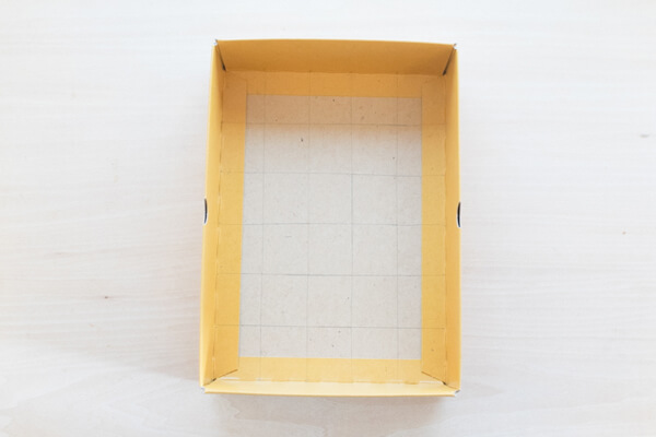箱の底に3cm程度四方の方眼を引きましょう。箱の中に入る定規がない場合、3cm程度の幅があれば、フリーハンドで線を引いても大丈夫です。