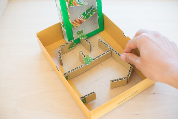 10. 箱の底に貼り付けましょう。これで迷路の本体の完成です!