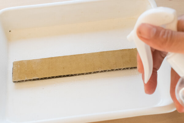 12. 「11」に、表面がビショビショになる程度に、霧吹きで水を吹きかけます。