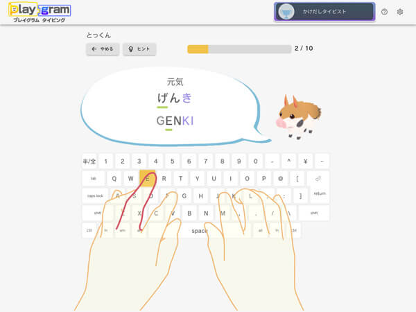 1つめのポイントは、楽しい演出があったりゲームになっていたりする練習プログラムを使うこと。自分が入力した文字が合っているか分かりやすいですし、「正しく入力できた!」という達成感も得られます。