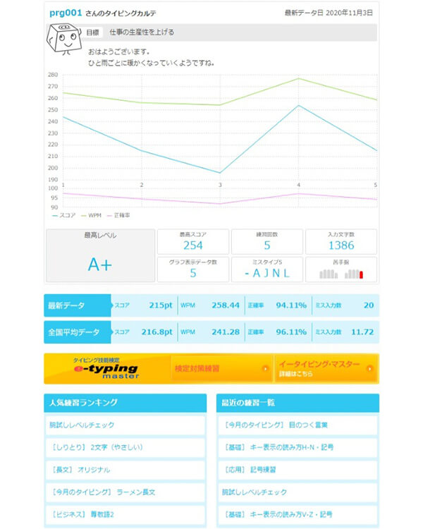 ログインして利用すれば、成績表や「マイタイピングリスト」なども利用可能です。