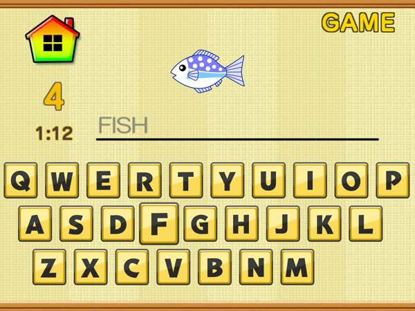 アニメーションで動物などの絵が出てきたら、画面に表示される英単語のつづりに従って入力していきましょう。