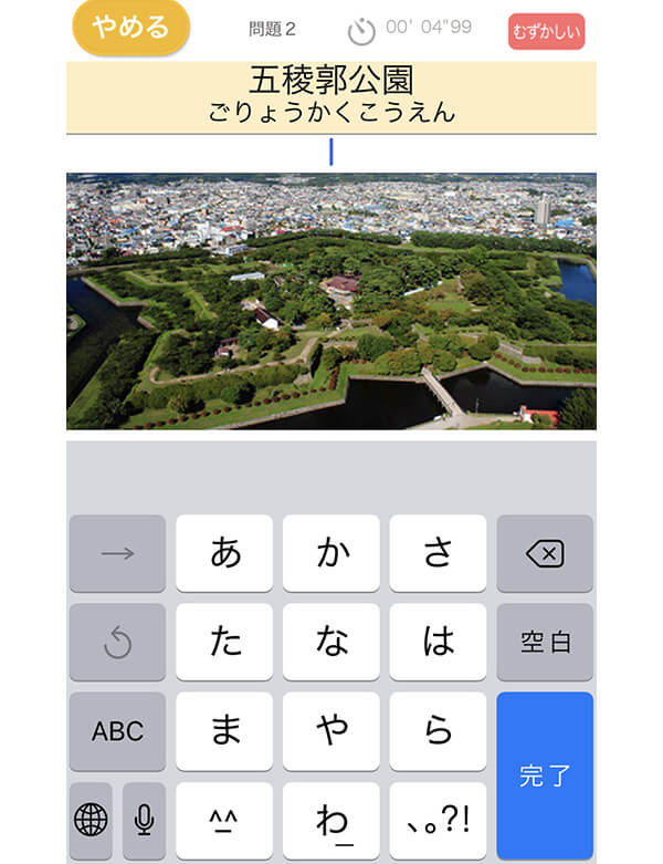 「タイピング練習〜日本の名所〜」の特徴は、日本のさまざまな観光名所(城や寺社など)の名前と写真を見ながらタイピング練習ができること。お城やお寺などが好きなお子さまはもとより、社会の勉強にも役立てたいという場合に便利なタイピング練習アプリです。