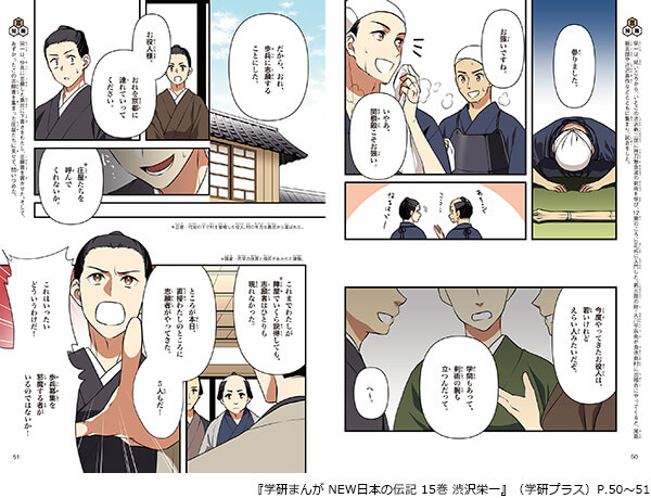 話題の人物ということもあり、各出版社からさまざまな渋沢栄一関連の書籍が出版されています。彼の生涯を伝えるということにフィーチャーした伝記では、主人公の絵がかっこいい『学研まんが NEW日本の伝記 15巻 渋沢栄一』(学研プラス)や、『学習まんが世界の伝記NEXT 渋沢栄一』(集英社)がよく売れています。