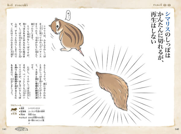 第1弾『ざんねんないきもの事典』に登場し、衝撃を与えたシマリスのしっぽ。リスはシリーズ最多登場。ざんねんな魅力いっぱいのいきものなんです。