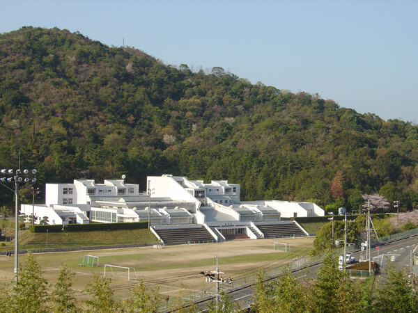 山のイメージでつくられた小学校に対して、その後完成した幼稚園、保育園は谷のイメージで、中学校は谷筋のイメージでデザインされています。文教地区のエリア全体が直島の豊かな自然と呼応した場となっています。