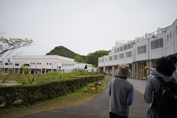 「海の駅なおしま」を見た後、「直島建築鑑賞ツアー」は、直島の中央に位置する文教地区に向かいます。三宅元町長は「直島で育つ子どもたちに故郷を誇りに思ってほしい」と願い、教育の充実を図ることから着手しました。その頃の直島には各地区に教育機関がありましたが、三宅元町長の文教地区構想により保育所から中学校までを島の中心に集め、町内に住むすべての子どもたちが交流しながら学べるようになりました。
