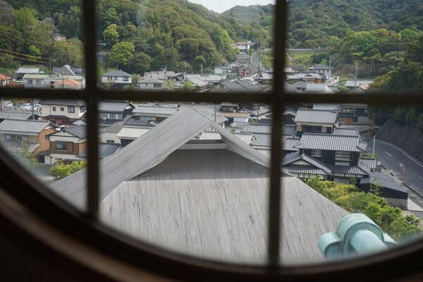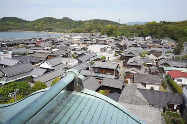 2015年に完成した直島ホールの風が抜ける入母屋屋根を上から見られるのも望楼ならではの景色です。