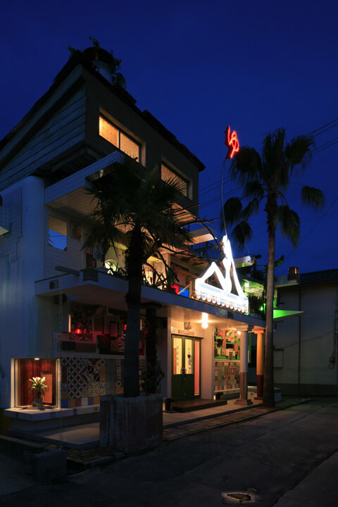 女性の形をした看板、「ゆ」のネオンサイン、ヤシの木、船底など、建物は様々なオブジェが組み合わされています。直島銭湯「I♥湯」を手がけるアーティスト・大竹伸朗は、現代アートに興味がない人でも楽しめるように「飽きさせない」アイデアを至るところに反映しています。