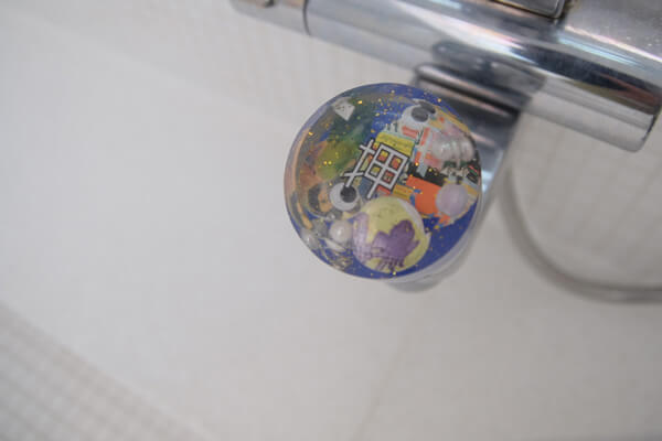 他にも色鮮やかな天井画や絵付けタイル、一つ一つデザインの異なるカランなど、大竹ならではの世界観が広がっています。いつもとは違うアートに囲まれた空間で浴槽につかると、直島での体験や普段の生活に思いをめぐらせる時間になるかもしれません。