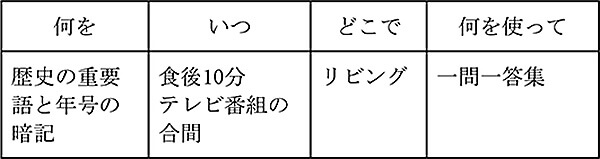 具体的な学習方法を決める際のポイントは、「何を」「いつ」「どこで」「何を使って」やるかです。