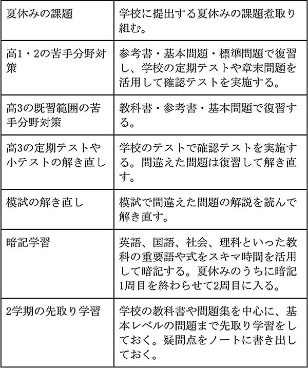 受験生である高校3年生の夏休みは既習範囲の苦手克服に全力を注ぎ、余裕があれば未習範囲の予習をするというのが基本です。