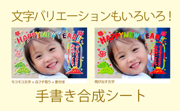 写真の上に文字やイラストを載せたいときは、「手書き合成」機能を使えば白フチの文字などもカンタンに写真と合成できます。