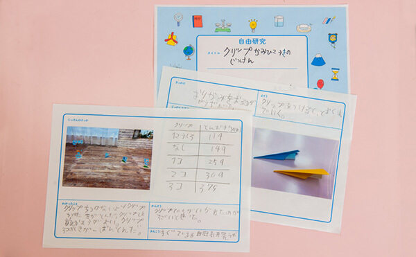 見事、43分でまとめまで完成!折り紙飛行機の写真と、手書き合成した写真で見やすいレポートになりました。