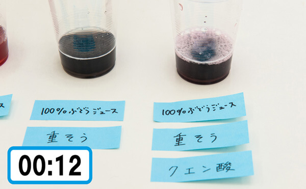 自由研究1時間チャレンジ2:ブドウジュースの色が変わる?