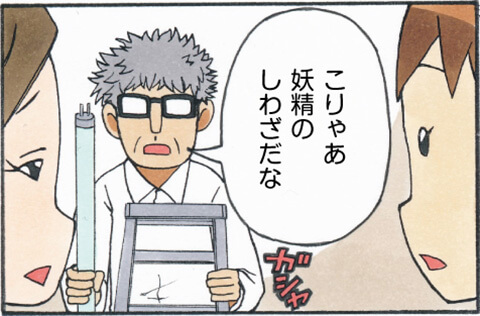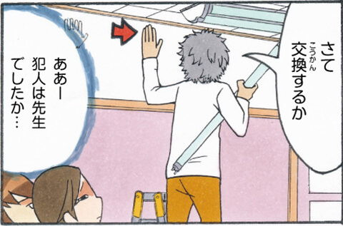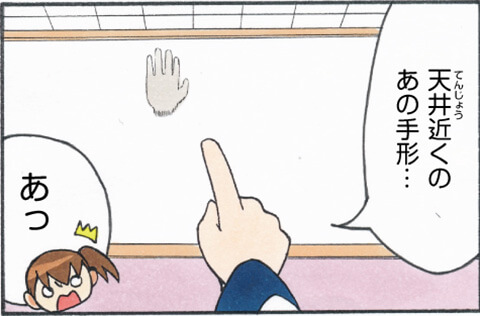 女の子たちは、思いがけず白い壁の手形の原因がわかり、ホッとしたようですね。生徒に「妖精のしわざだな」と話して、夢を持たせようとする先生も素敵ですね。