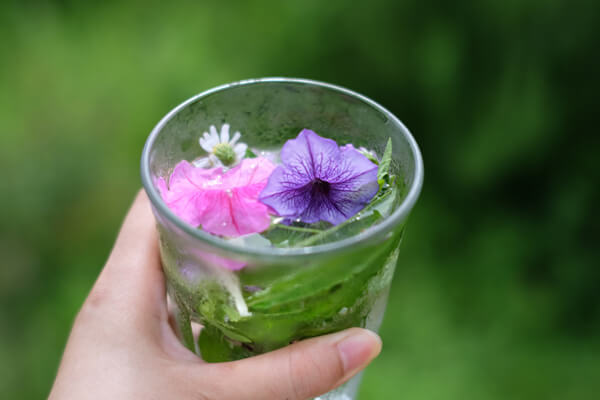 食べられる庭で摘んだハーブで作ったハーブウォーター