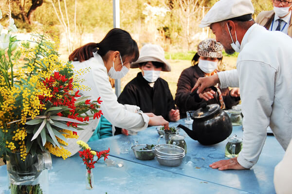 橋詰氏の説明を聞きながらハーブティーを作る様子