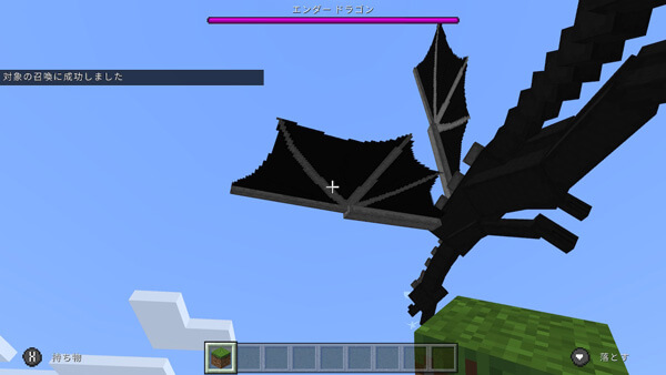 「/summon」コマンドでエンダードラゴンを呼び出してみました © 2021 Mojang AB. TM Microsoft Corporation.