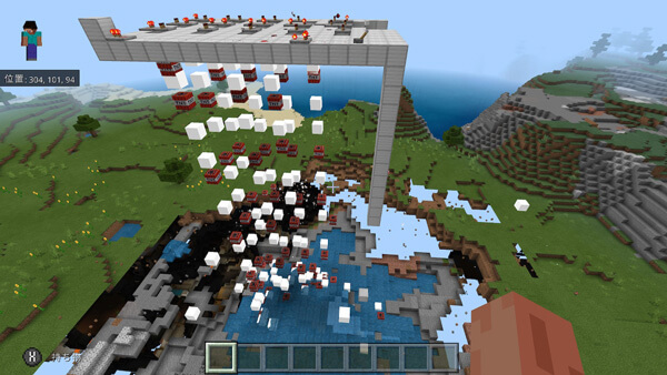 レッドストーン回路を使ってTNT爆弾をたくさん投下 © 2021 Mojang AB. TM Microsoft Corporation.