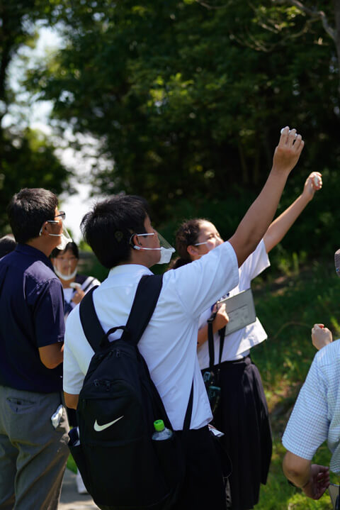 作品空間に到着すると、生徒たちは五感を使いながら思い思いに作品を鑑賞します。生徒同士で気づいたことを教え合ったり、Ontennaを使って空間内で感じ取れる音を探したりする場面も見られました。