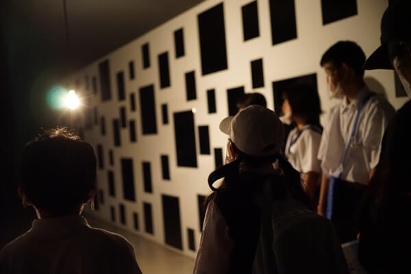 館内には3つの部屋があり、豊島中学校の生徒と聾学校の生徒がペアになって鑑賞しました。