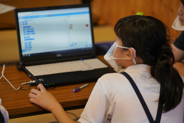 作品を鑑賞した聾学校の生徒たちは、Ontennaの振動や光をプログラミングして自分だけのOntennaをつくります。